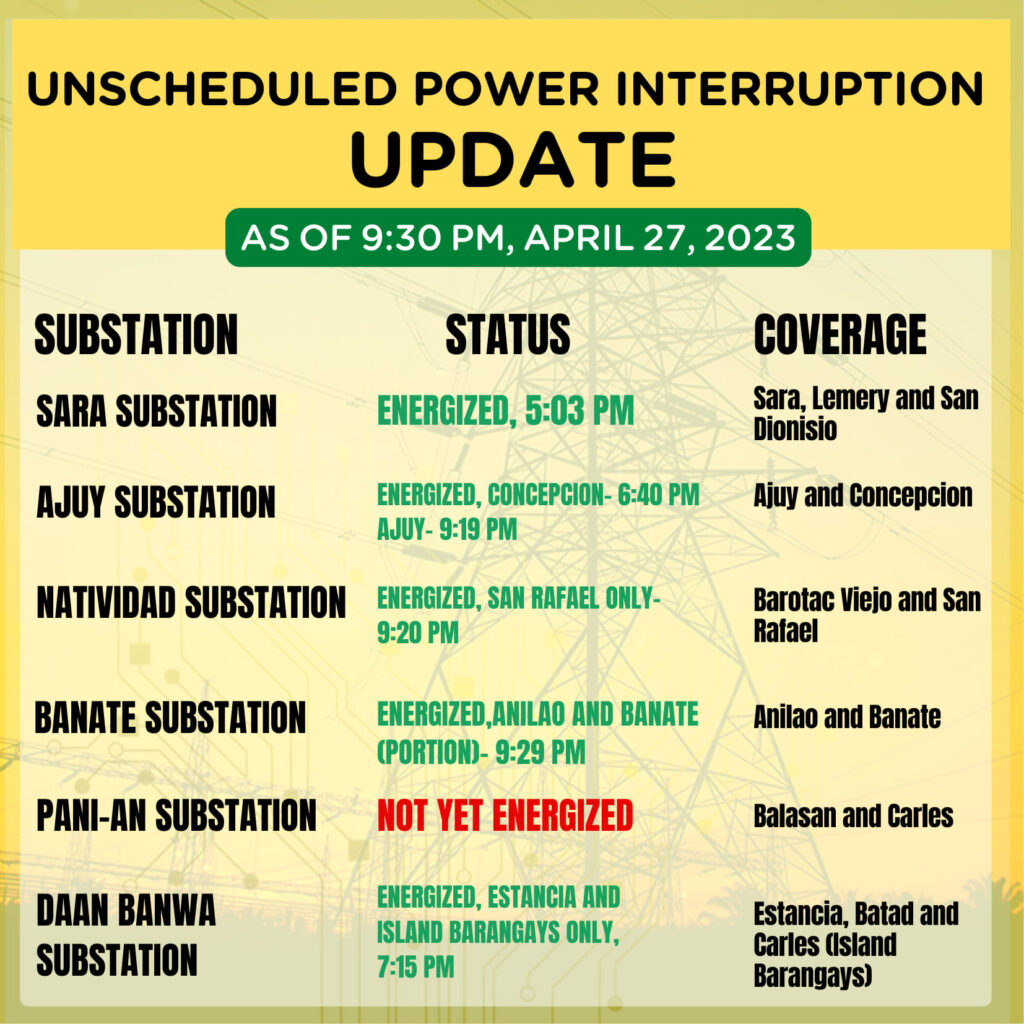 UPDATE ON UNSCHEDULED POWER INTERRUPTION As of April 27, 2023, 9:30 PM