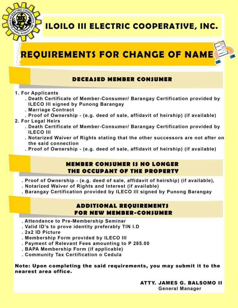 • Death Certificate of Member-Consumer/ Barangay